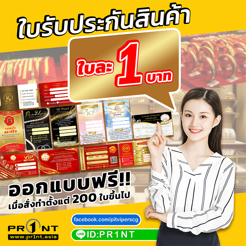 ใบรับประกันสินค้า ทอง / เพชร / เครื่องประดับบัตรออมทอง นามบัตร /ใบคาถาบูชาวัตถุมงคล / ใบรับประกันพระแท้